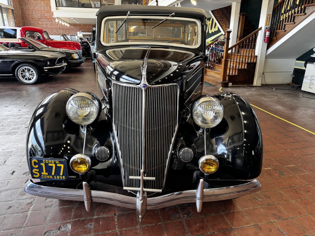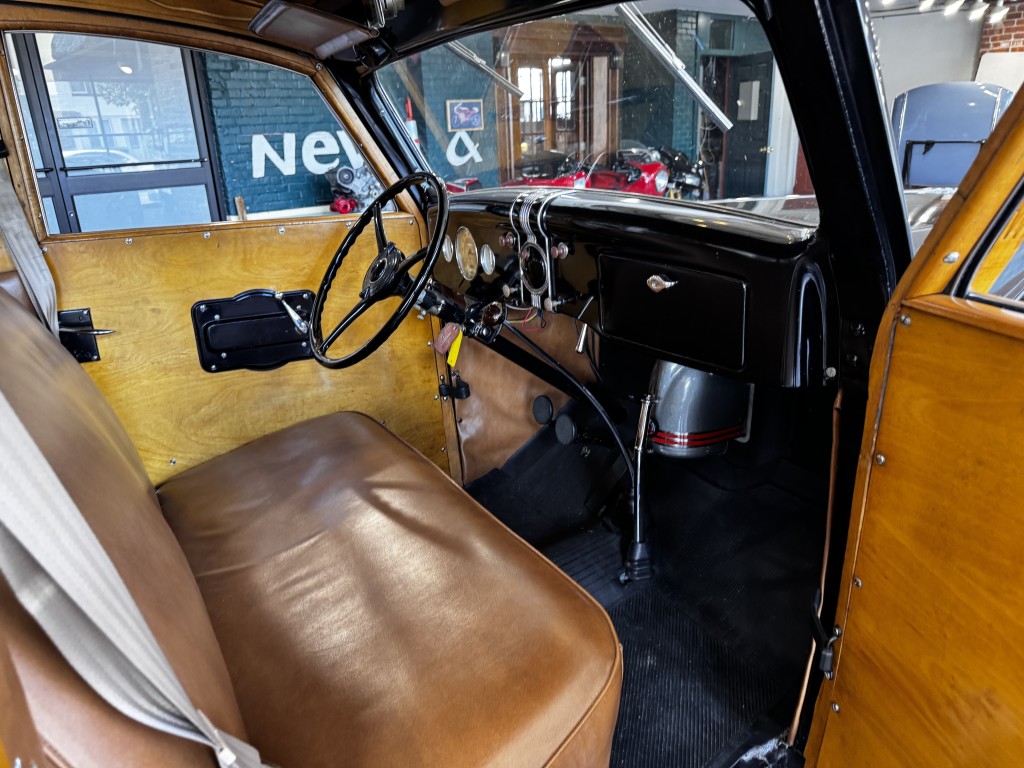 The car on offer here is this very rare 1936 Ford Model 68 Station Wagon. The car has been beautifully maintained both cosmetically and mechanically, and is certainly one of the finest in existence today. Presented with a high level of originality. The exterior has clearly been refinished and extensive recent service has been completed. The entire fuel system was replaced in 2020. Metal and wood panels, trim, glass, the interior, and powertrain all appear well-maintained. Other key features of this woodie wagon include its original mirror clock, a period portable radio comes with the car and Southwind heater factory optional two-speed Columbia differential.