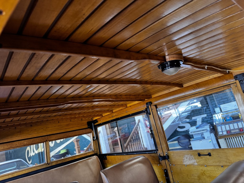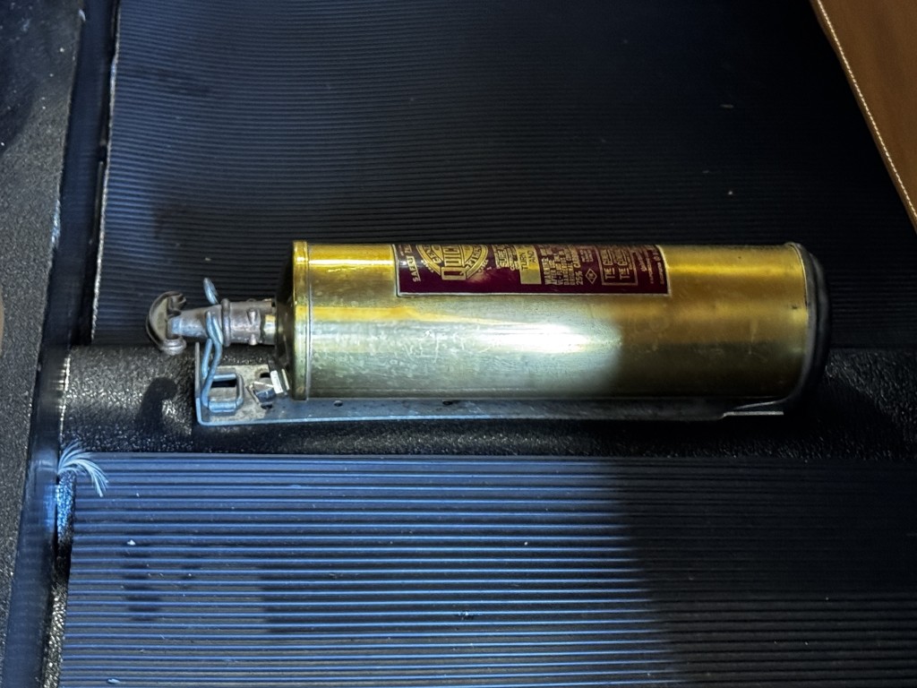 The three rows of seats are covered in tan vinyl it has has recently been restored, including the correct black rubber mats