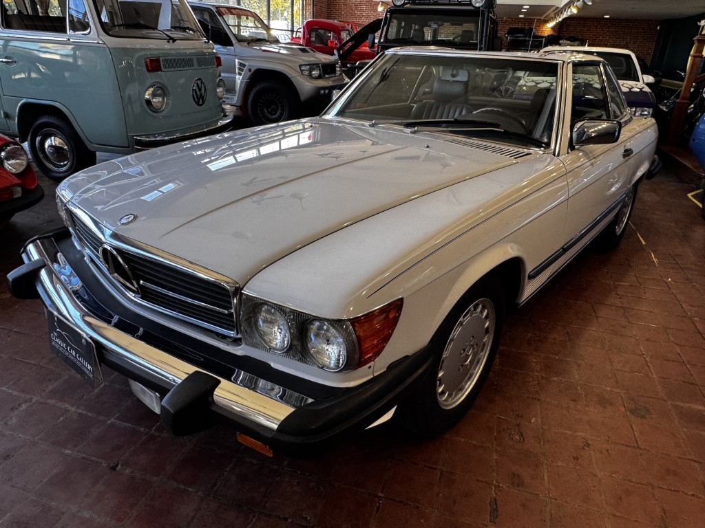 The Classic Car Gallery is proud to offer this beautiful ONE FAMILY OWNED 1987 Mercedes Benz 560 SL. This car has only traveled 34,900 Carfax verified miles, and is in excellent throughout. The car is in wonderful condition and the low mileage is obvious. The original WHITE paint is excellent with deep luster and shine. The original BLUE leather interior is supple and shows little wear. The dash is in excellent condition, with no issues. All gauges and ancillary components work, as they should. The motor starts easily, runs smoothly and puts out good power and torque. The blue convertible top is in excellent condition the only blemish is a ½ inch pinch in the driver's side plastic side window. The white hardtop is likewise in good condition. The A/C blows cold the heat works as it should. Brakes, and suspension are all in good condition, and the car drives well. The car has its original radio. The underside of the car is extremely clean, and the muffler system is good. This is a very nice low mileage 560 SL and is a fine example of the marque. Please feel free to call us at 203 256 9800 or email [email protected] if we can answer any of your questions.