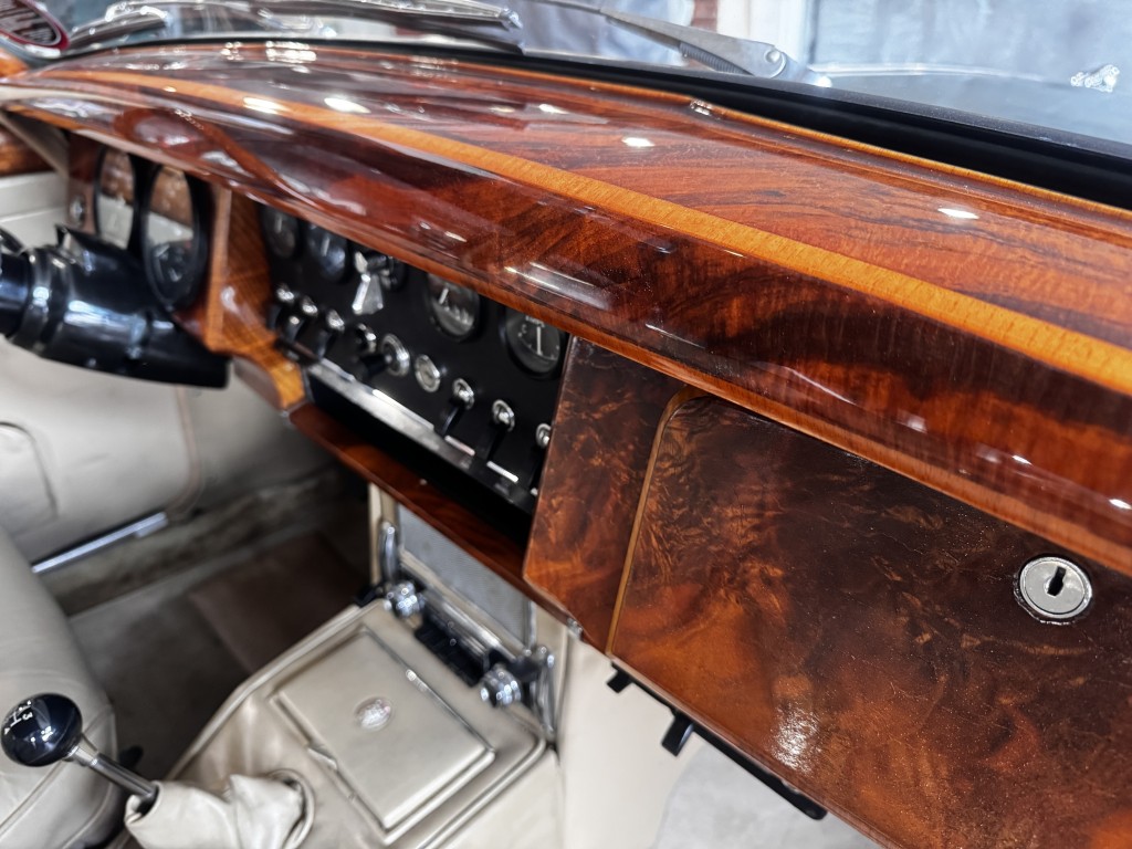 The result is a superb car, which starts easily, has great power and torque and handles as designed. and it has been a darling of the show circuit since. The Green paint is stunning with great shine and luster. The tan leather interior, likewise, shows as near new. All trim both inside and outside is in excellent condition the chrome is excellent and unblemished the rubber seals are fresh and moist. The wood veneered dashboard and door caps are finished to a very high standard. The shut lines are factory correct.